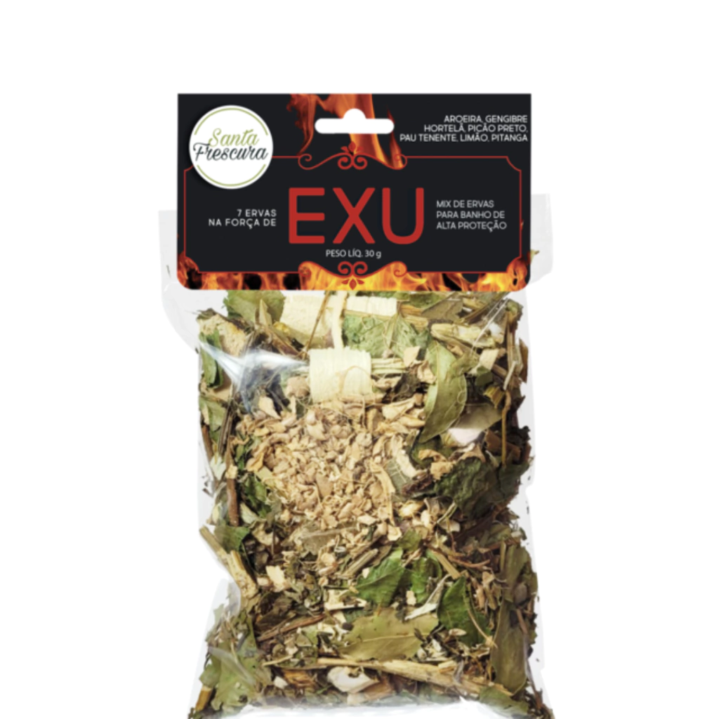 Banho com 7 ervas ligadas à energia espiritual de Exu. Vitalidade, realização, proteção, conquistas materiais e pessoais. Com um supermix de ervas especialmente pensadas para esse banho como: Aroeira, Gengibre, Hortelã, Picão Preto,Pau Tenente, Limão e Pitanga. Laroyê Exu! Se você se sente carregado, absorvendo muitas energias negativas, ou até mesmo sente que as coisas não fluem em sua vida, é sinal que você está absorvendo muitas energias e os banhos de ervas podem lhe ajudar. Os banhos de ervas são excelentes combatentes de energias negativas, inveja, mau olhado. São ideais para banir energias negativas e atrair energias positivas. Cada banho contém ervas próprias para cada situação a ser trabalhada.