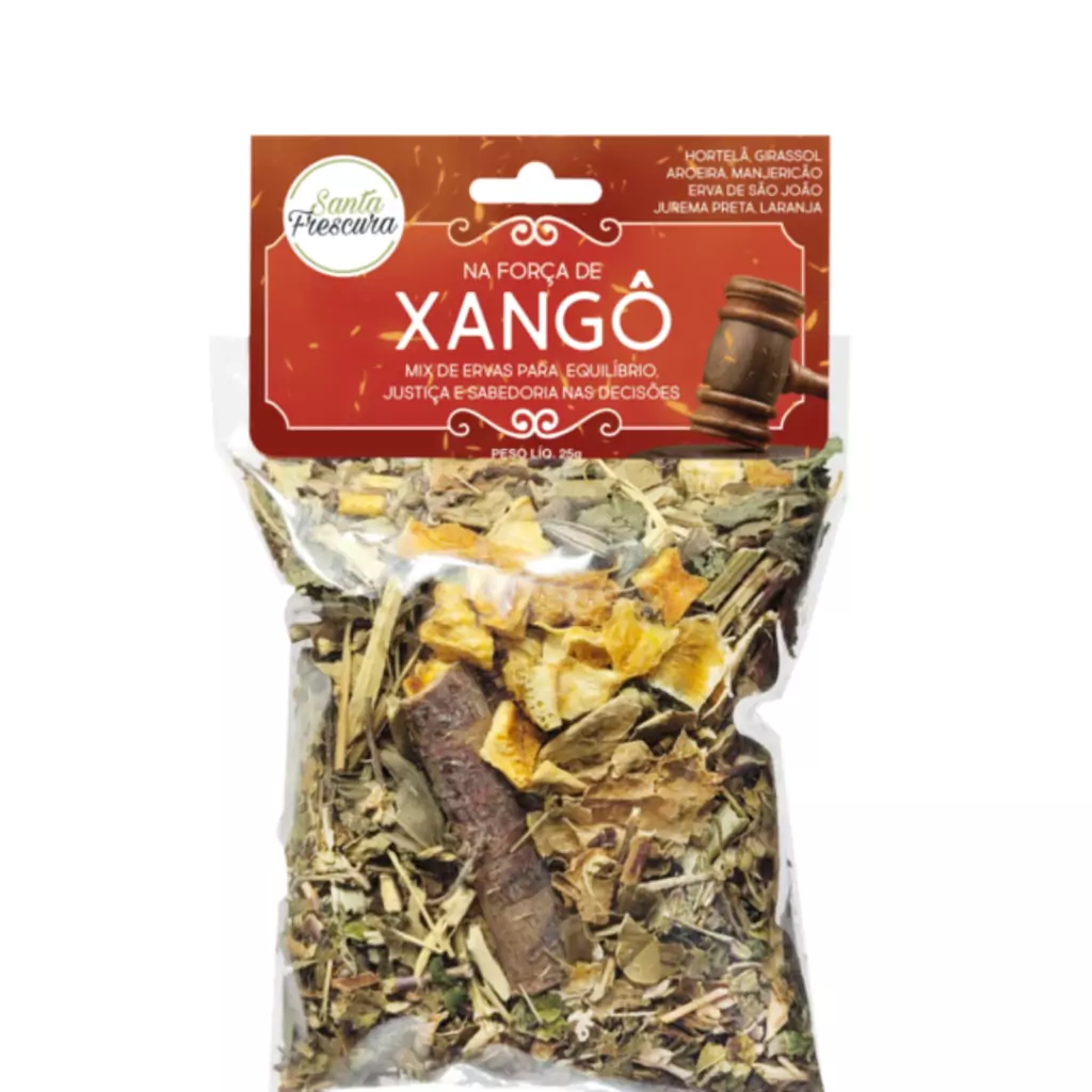 O banho de Xangô possui 7 ervas ligadas à energia da sabedoria, equilíbrio e justiça maior do orixá Xangô. Com um mix de ervas como: Hortelã, Girassol, Aroeira, Manjericão, Erva de São João, Jurema Preta e Laranja. Se você se sente carregado, absorvendo muitas energias negativas, ou até mesmo sente que as coisas não fluem em sua vida, é sinal que você está absorvendo muitas energias e os banhos de ervas podem lhe ajudar. Os banhos de ervas são excelentes combatentes de energias negativas, inveja, mau olhado. São ideais para banir energias negativas e atrair energias positivas. Cada banho contém ervas próprias para cada situação a ser trabalhada.