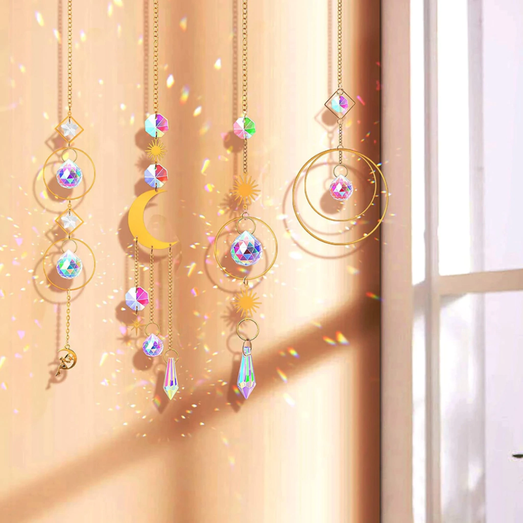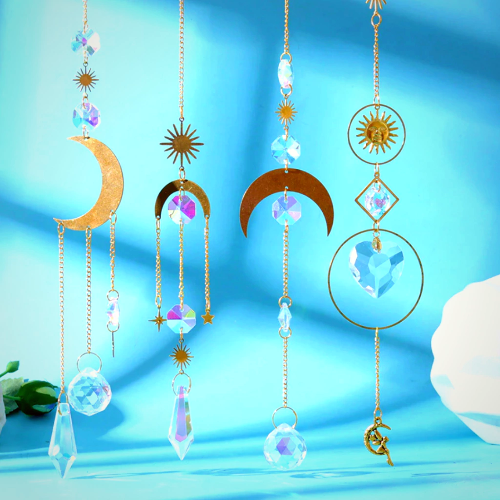 O cristal multifacetado reproduz as cores do arco-íris e serve para melhorar, conduzir, expandir, corrigir ou ativar o chi (energia vital) dos ambientes. Conhecido também por Prisma, Suncatcher ou Apanhador de Sol é um item excelente para absorver e refletir a luz do sol sobre o ambiente. Ele é muito utilizado no FENG SHUI para harmonizar e equilibrar a energia dos locais.