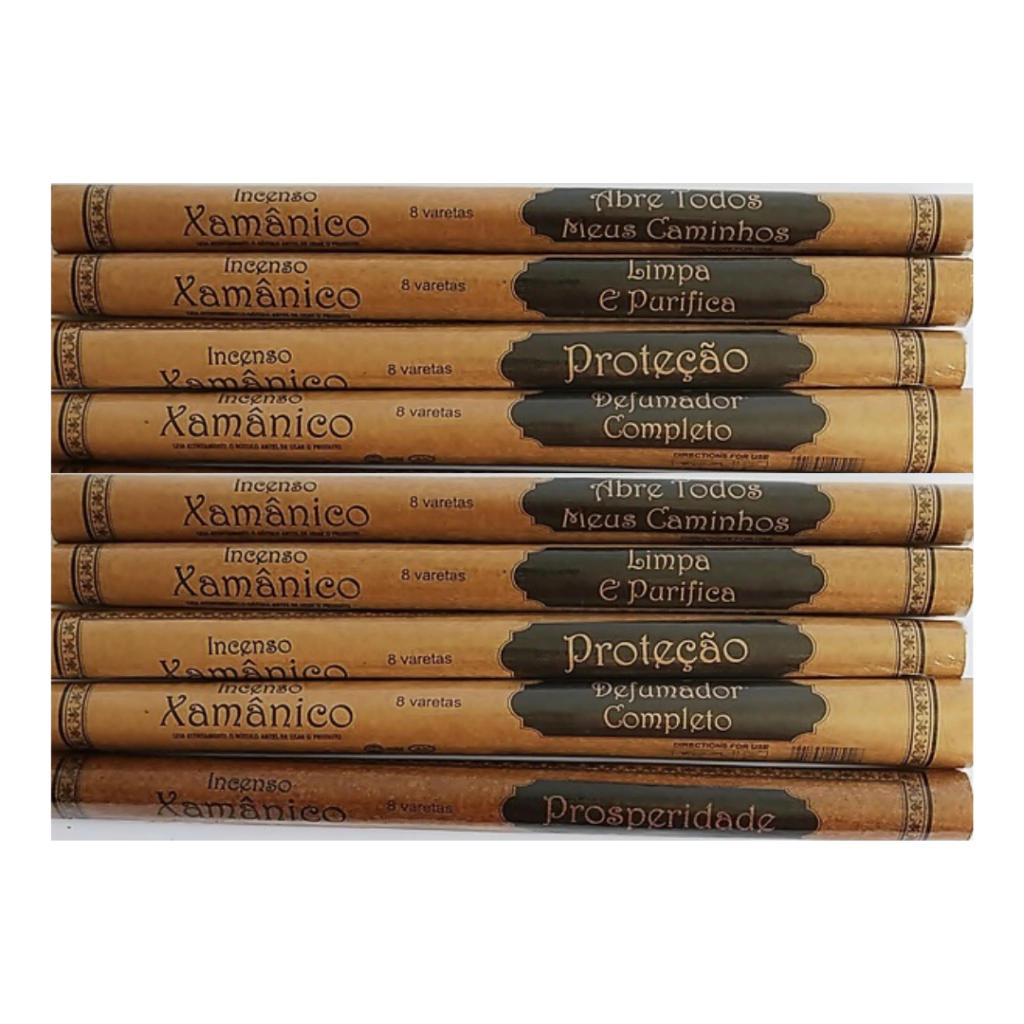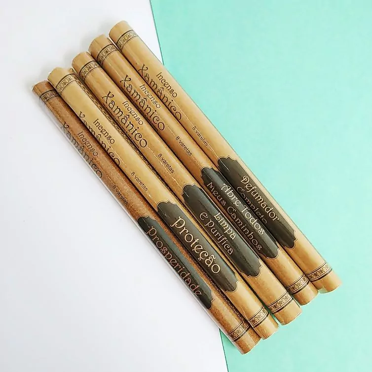 Os incensos xamânios possuem uma espessura maior, quando comparado ao incenso massala tradicional, sua fumaça é mais densa, ideal para defumar. A Cânfora que possui em sua composição é ideal para limpar os ambientes e remover tudo que tem de ruim.