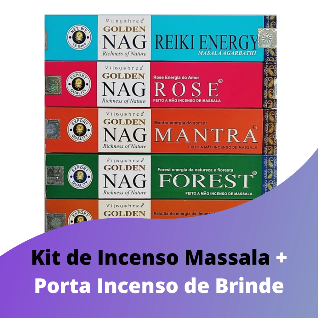 Incenso Golden Nag é um incenso natural indiano artesanal (enrolado de forma tradicional à mão). Feito à base de óleo de sândalo puro (Santalum album) espécie nativa do subcontinente, resinas e óleo de flores, contém massala, é um incenso especial especificamente formulado para ajudar e definir a atmosfera para a prática da meditação