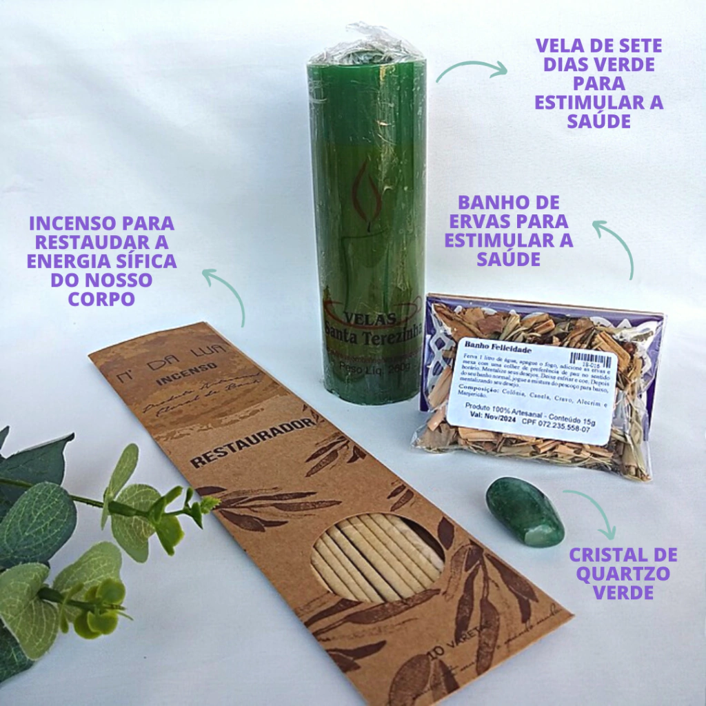 Os kits de boas energias foram montados para promover mais conexão com aquilo que buscamos. O Kit de saúde é ideal para aquelas pessoas que buscam mais estabilidade física, melhorar o sistema imunológico ou realizar algum ritual voltado para esta finalidade.