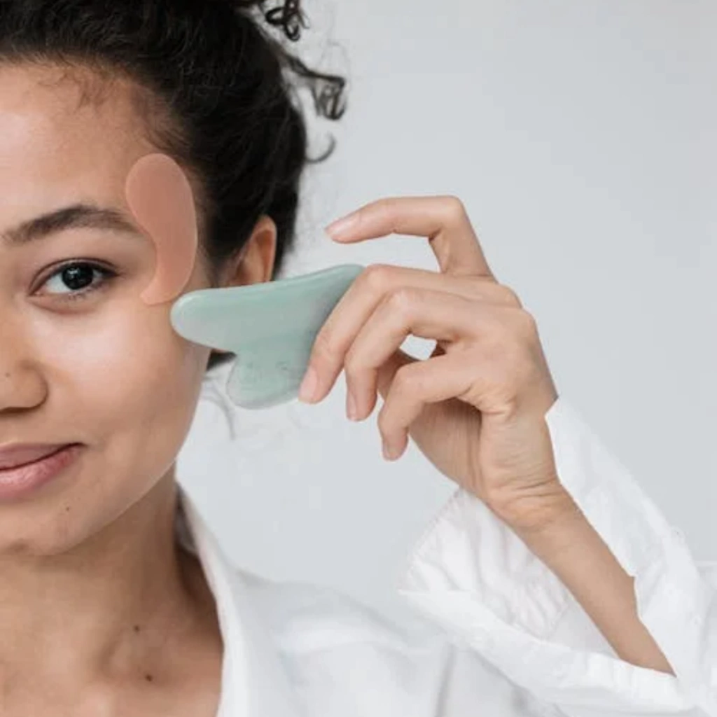 O Gua Shá é um instrumento de massagem facial milenar feito com cristais. Possui origens na medicina Chinesa. Existem vários benefícios dele, dentre os principais: alívio de tensão dos músculos, aumento de circulação sanguínea, diminuição de rugas e alisamento das mesmas, aumento de firmeza e tonicidade da pele e redução do inchaço.