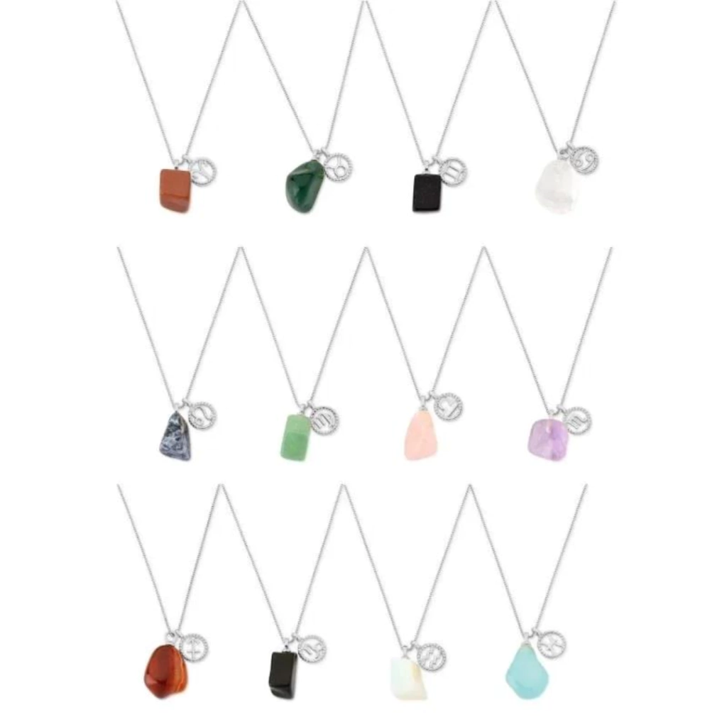 O colar dos signos é ideal para quem é fã de horóscopo. Além de delicados acompanham o cristal relacionado ao signo. Os signos disponíveis são: Áries, Touro, Gêmeos, Câncer, Leão, Virgem, Libra, Escorpião, Sagitário, Capricórnio, Aquário, Peixes.