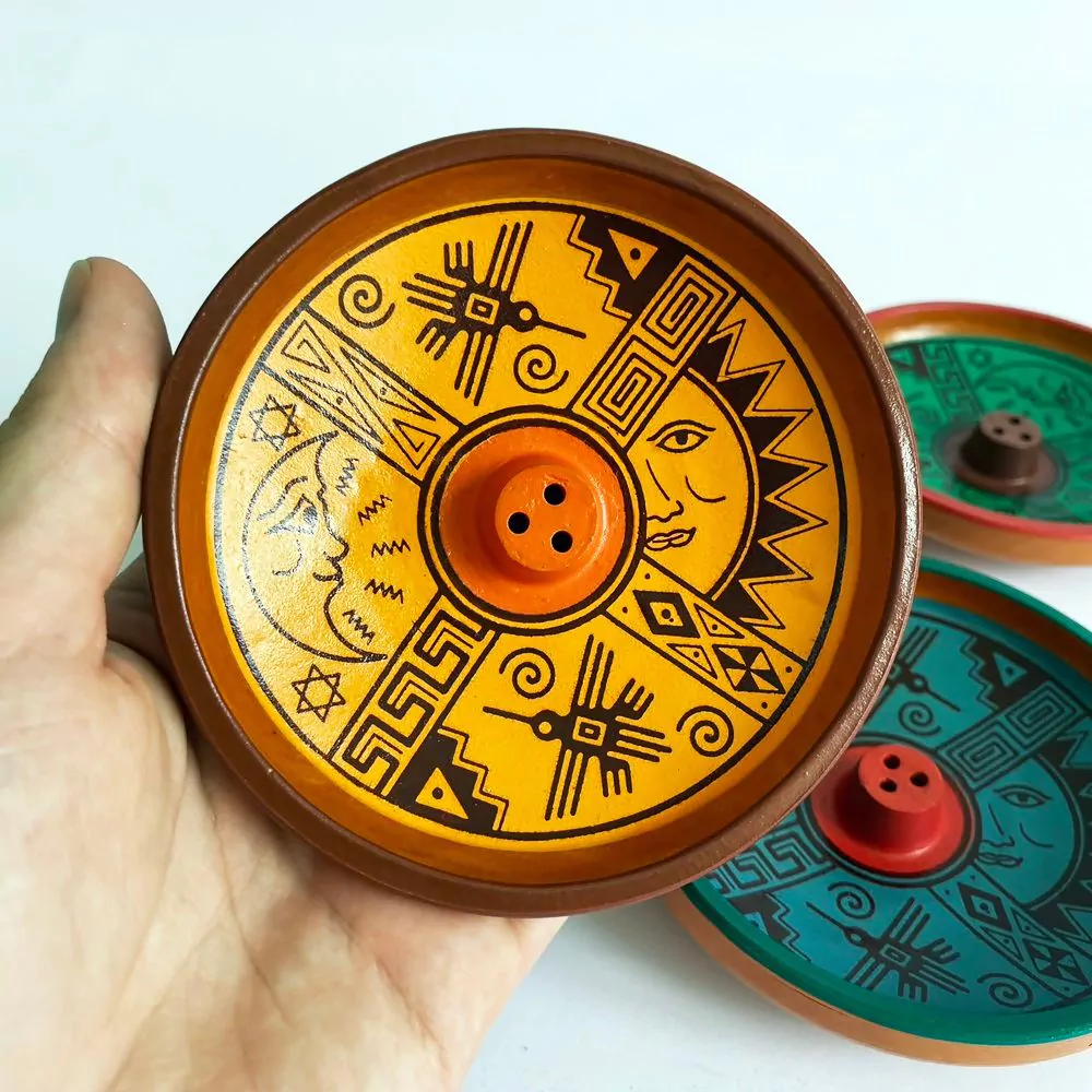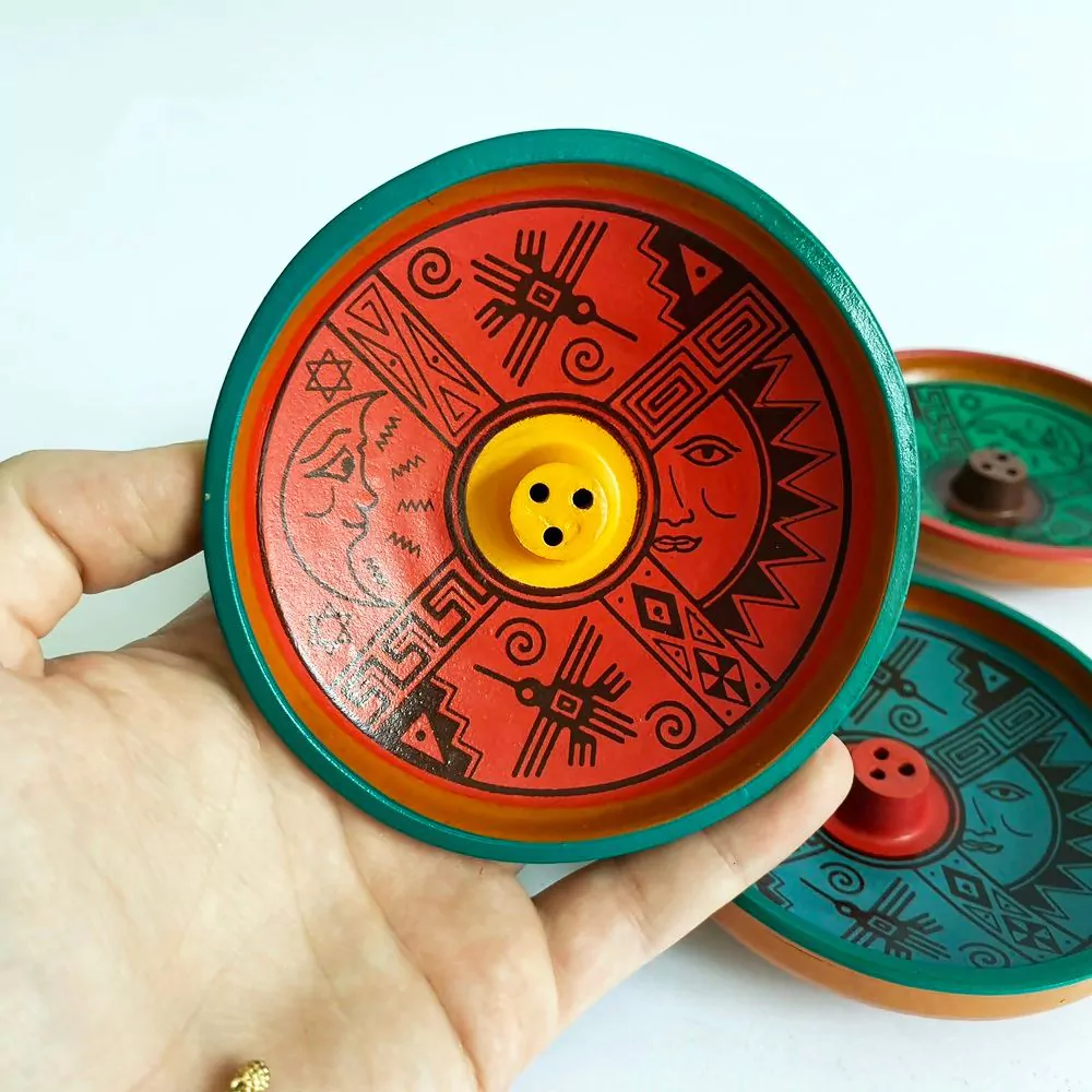 Os modelos de incensários peruanos são feito de cerâmica e decorados com mandalas. Suportam 3 incensos acesos em uma única vez. As mandalas auxiliam na proteção, abertura de caminho, dinheiro, sorte e amor em nossa vida, já que são círculos sagrados. Os desenhos podem variar de acordo com cada lote de porta incenso.