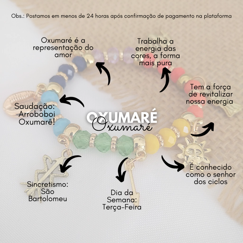 Oxumaré é filho de Nanã, é a divindade do movimento, do ciclo vital. Esse orixá é homem e mulher ao mesmo tempo, ele representa as dualidades, como o dia e a noite, o bem e o mal.