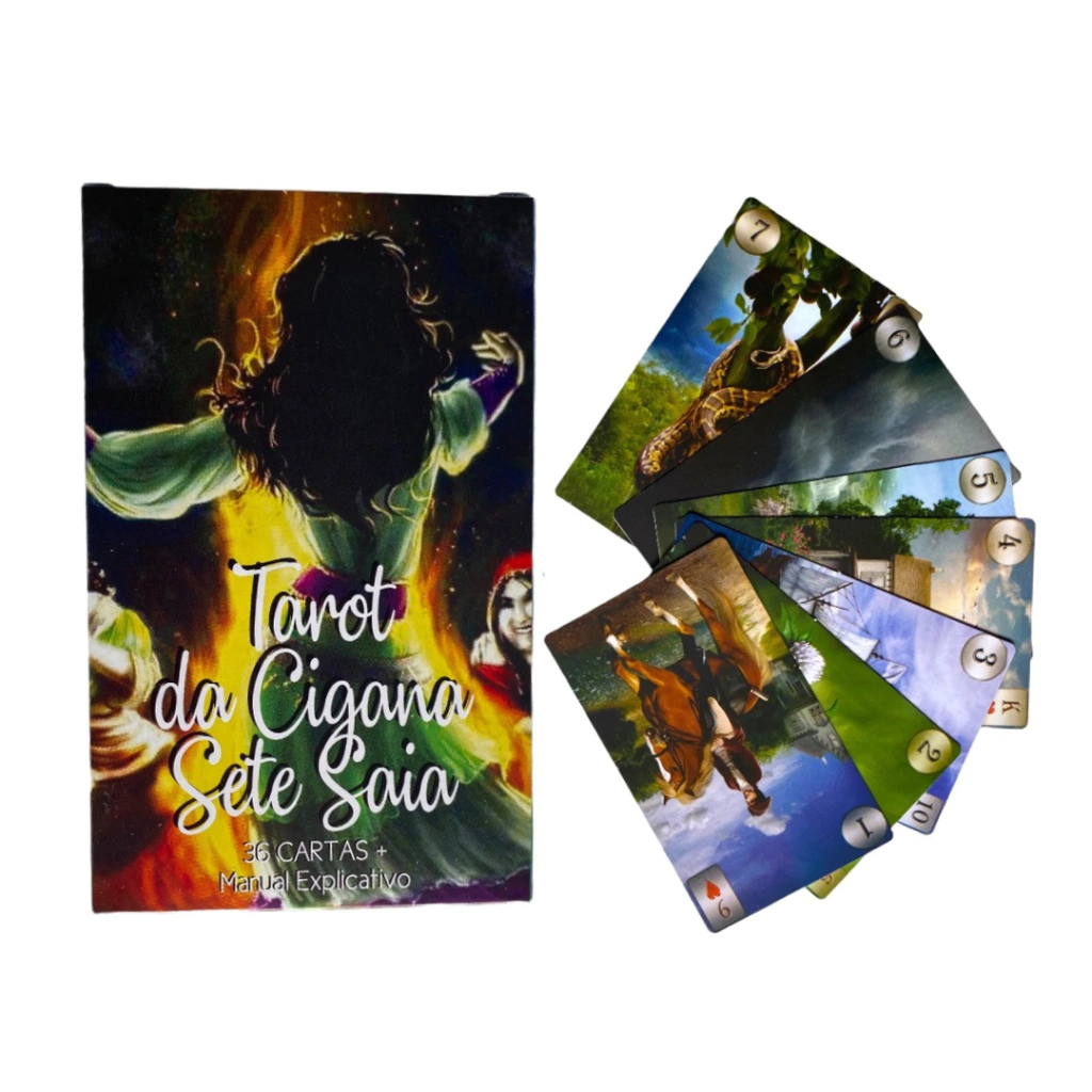 Ao contrário de outros baralhos, o Tarot da Cigana Sete Saias carrega consigo a energia mística e a intuição aguçada da cultura cigana. Cada carta, vibrante e cheia de simbolismo, atua como um guia espiritual, refletindo os caminhos e desafios que encontramos em nossa jornada pessoal. As leituras com este baralho são profundamente intuitivas, trazendo à tona mensagens específicas que ressoam com a alma e as circunstâncias únicas de cada indivíduo.