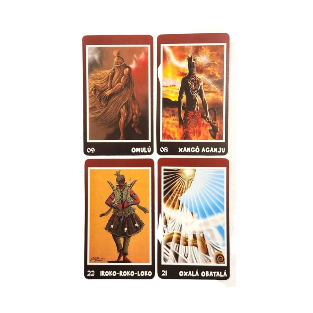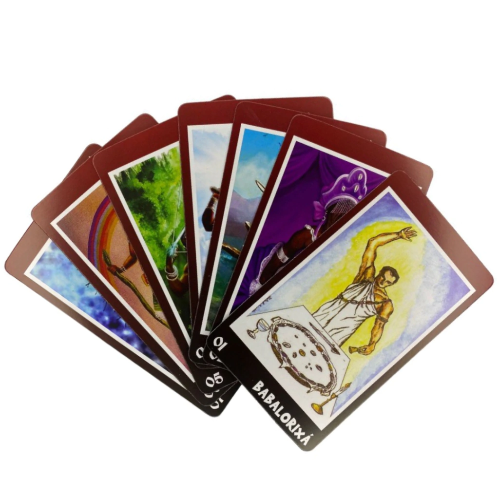 Revelando o Mistério do Baralho dos Orixás" é um baralho oracular que combina a rica simbologia das divindades afro-brasileiras com a prática de leitura de cartas. Cada carta representa um Orixá, trazendo consigo a energia, os mitos e os arquétipos que lhe são atribuídos. Ao utilizar o baralho, o consulente se conecta com as forças ancestrais e espirituais, buscando orientação, proteção e autoconhecimento. A interpretação das cartas permite que se revelem aspectos ocultos da vida do consulente, mostrando caminhos e soluções para questões diversas, sempre respeitando a tradição e a sabedoria dos Orixás. Este baralho é uma ferramenta poderosa para quem deseja aprofundar sua conexão com as entidades espirituais e compreender melhor os desígnios do universo através da cultura e da religiosidade afro-brasileira.