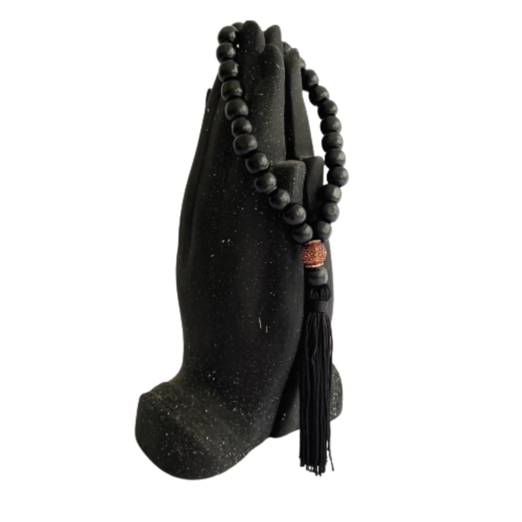 O Japamala é um cordão de geralmente 108 contas que é utilizado para recitar mantras, auxiliar na meditação e como amuleto de proteção. O nome vem do sânscrito, "Jap" que significa sussurrar e "Mala" que nada mais é do que cordão de contas. Apesar de ser muito encontrado em sua versão de 108 contas, é facilmente visto em outras divisões desse número, como 18 contas, 27 contas, 36 contas e 54 contas. Quando você chega ao MERU que é a conta central da peça, geralmente a maior ou a que antecede o pingente, significa que você completou o ciclo e está mais perto da elevação espiritual.